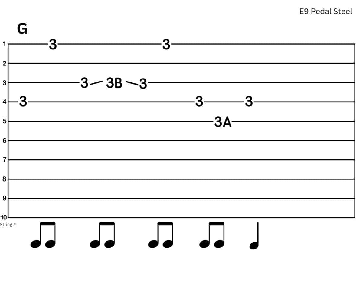 Many licks that sound good on the pedal steel require you to have efficient and accurate right hand blocking. This way, only the strings or notes that you are playing are sounding as you pick them – the other strings usually need to be blocked or muted so that only the notes you are playing are sounding at that time.