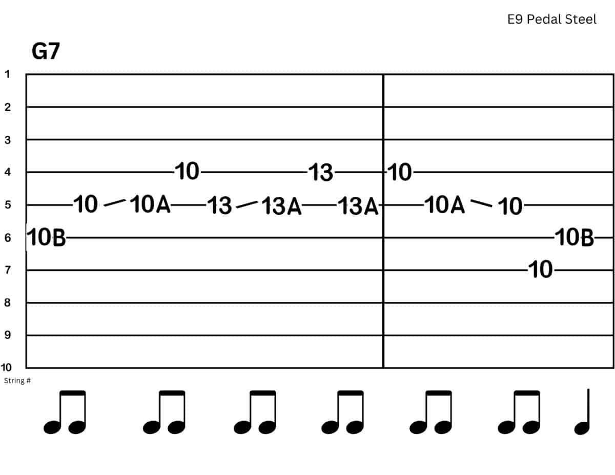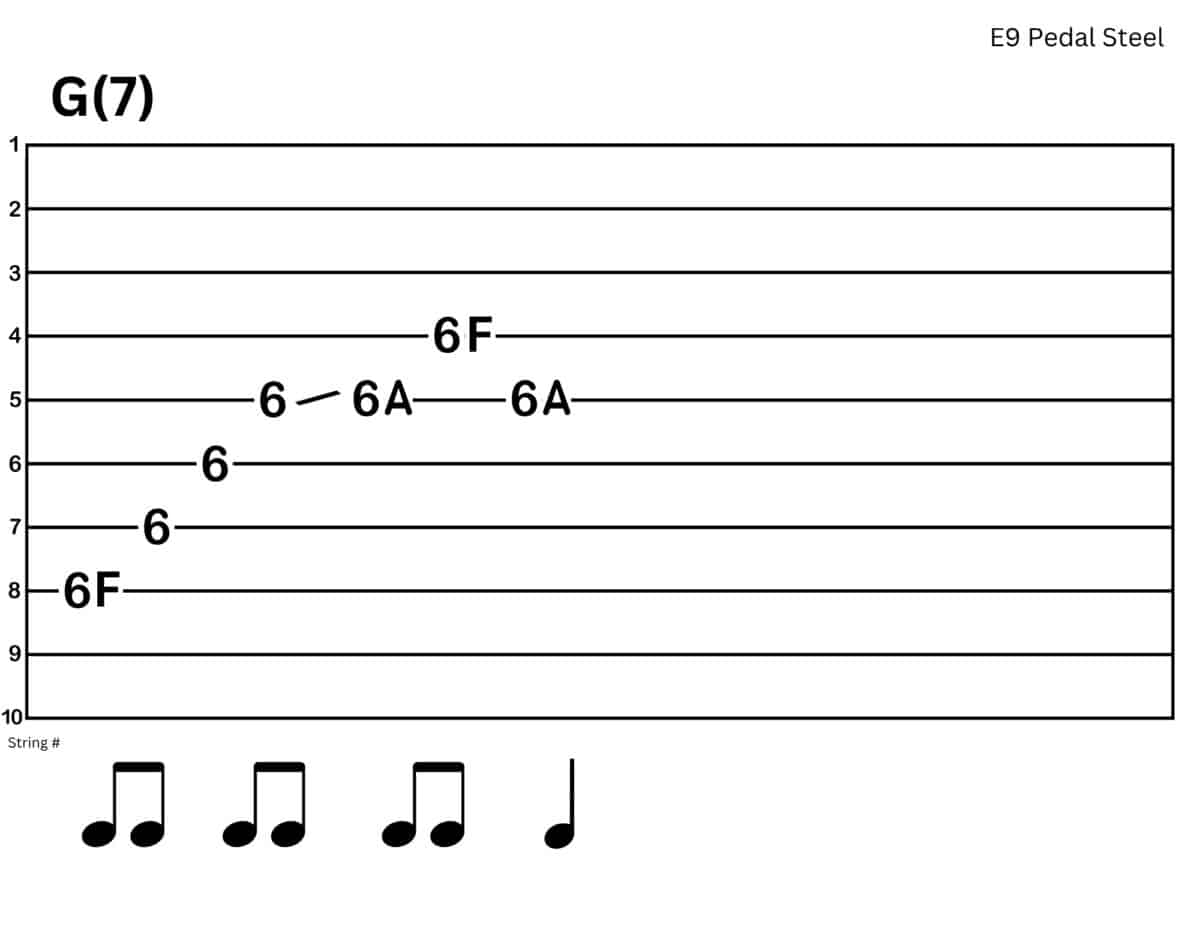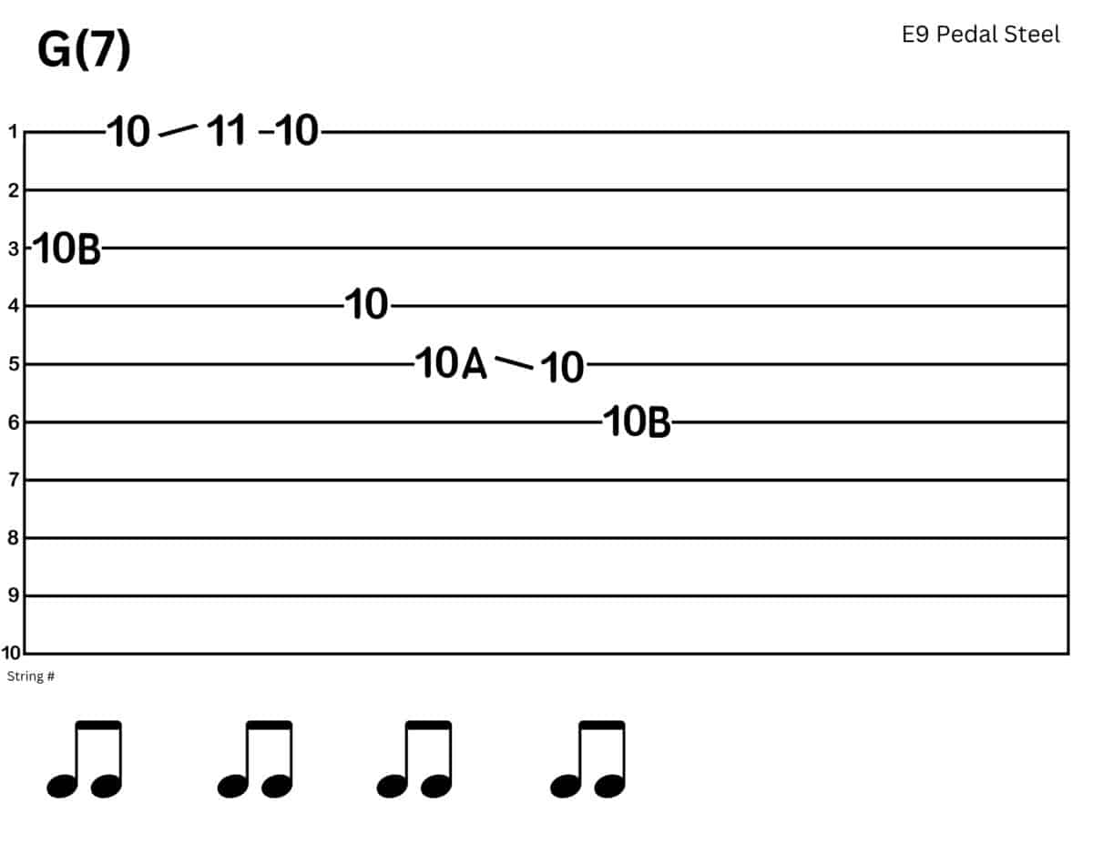 One of the most useful aspects of these licks is that some employ the use of the 1st string, and also that some use runs on strings 8 through 4. These patterns are often found in many single note fills on the E9 neck, and require you to block well in order to play them accurately and up to speed.